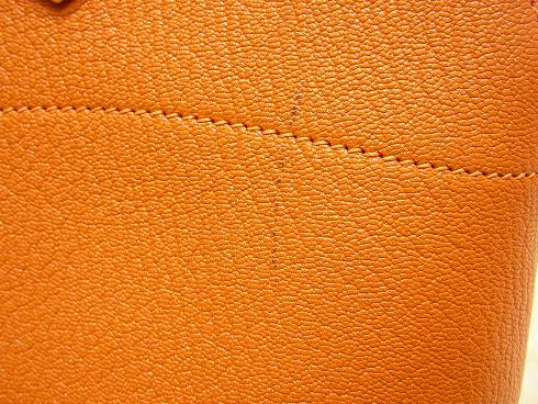 ボールペンのような染みは下地処理と染色補正でメンテナンスをします。カデナもお磨きを致します。山羊革シェーブルの程よい光沢感が特徴ですので素材のもつ風合いを損なわないようメンテナンスを致します。