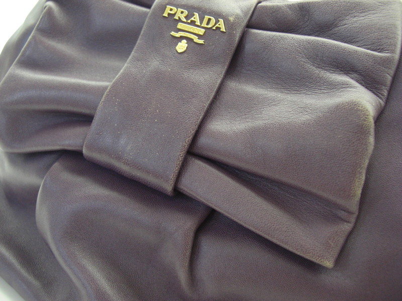 PRADAレザーリボン バッグメンテナンスのご紹介です。革のスレと乾燥は染色補正と保湿を施し、本来の色合いに戻します。プラダのレザーバッグは定期的にクリームなどで保湿されることをお勧めいたします。保湿を怠ると革が乾燥してひび割れなどを起こす原因となります。