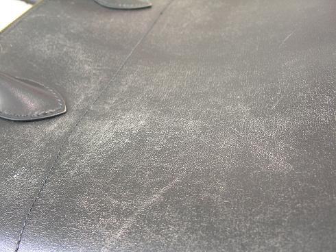 エルメスの素材の中でも非常にデリケートなボックスカーフは日頃から保湿やお磨きを怠ると、このように乾燥状態になりがちです。普段使いが少ない素材なので、定期的なメンテナンスが必要です。表面の艶感は程よく抑えてエルメスの風合いを再現いたします。ピカピカというよりも深い光沢感を意識します。