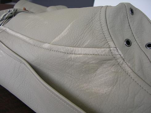 撥水加工を施したレザーは染色補正を施しても違和感が出る場合が多いですが、専門のスタッフが素材の状態を見極め最適なケアをご提案いたします。