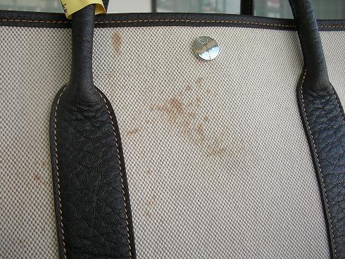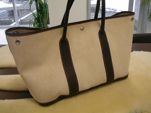 エルメスのガーデンパーティーの日焼け色褪せが酷くエルメスアフターセールスカウンターに持ち込みましたがこんなに状態が悪いとどうにもならないと言われかなり落ち込んでいましたがネットで検索してはなこやさんを知りました。エルメスにも無理と言われてたので少しでも綺麗になればぐらいで期待しすぎないでお願いしました。