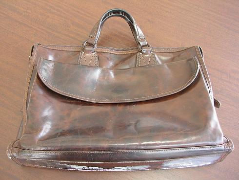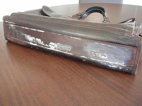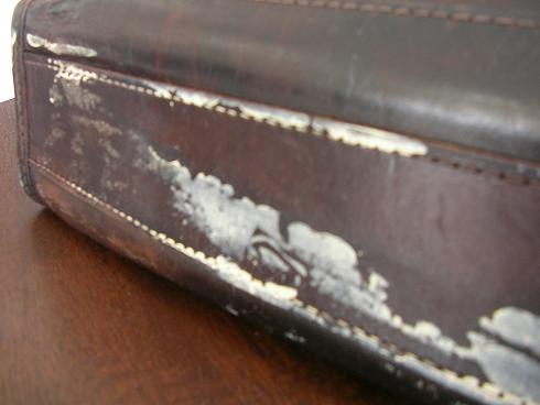 こちらのバッグは染色していないナチュラルレザーを使用しているため、出来るだけ染色しないでペンキのみを取り除いていきます。革の性質や状態によってメンテナンス内容が変わります。