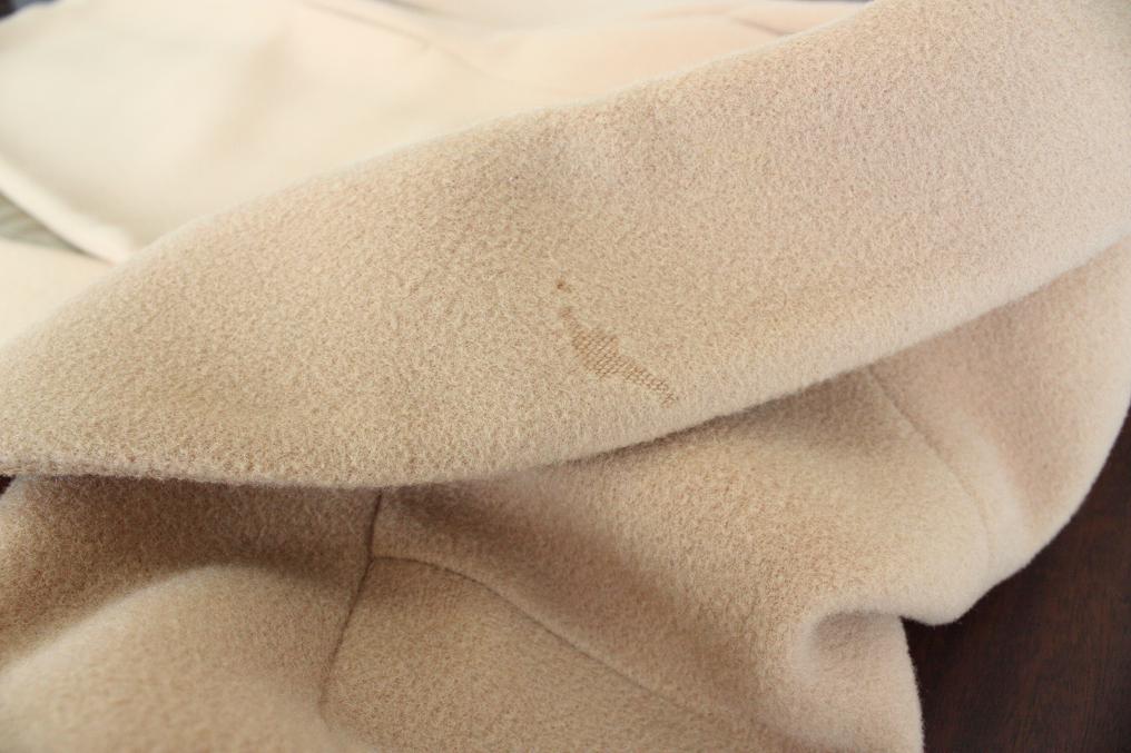 カシミヤコートの虫食いは生地に穴があいていない状態であれば修復は可能です。カシミヤは特に虫が食いやすく、保管には注意が必要です。