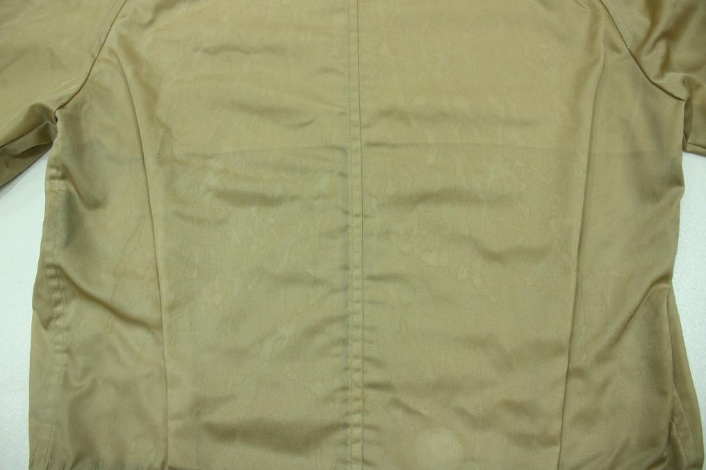ナイロンジャケットの雨染みはウェットクリーニング(水洗い)することで概ね除去可能です。仕上げに今後の汚れ防止にもなるハイパー撥水コーティングを施します。