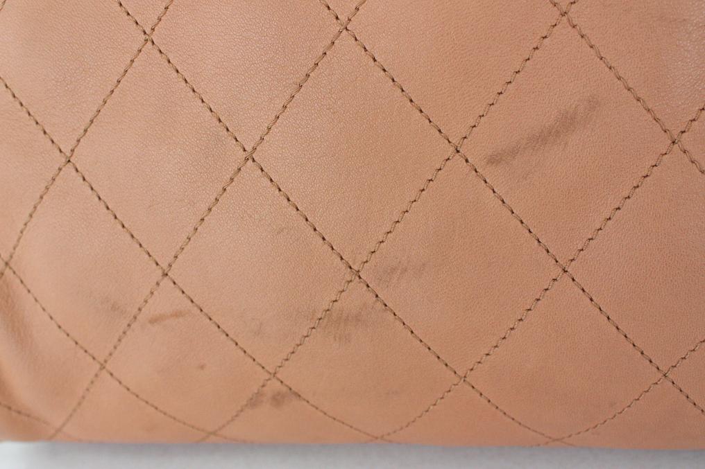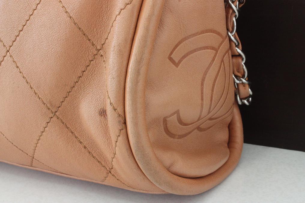 シャネルのラムスキンは非常に柔らかくデリケートなので、擦れて傷が付きやすいです。擦れ傷が出来た場合は染色補正にて見栄えを良く致します。