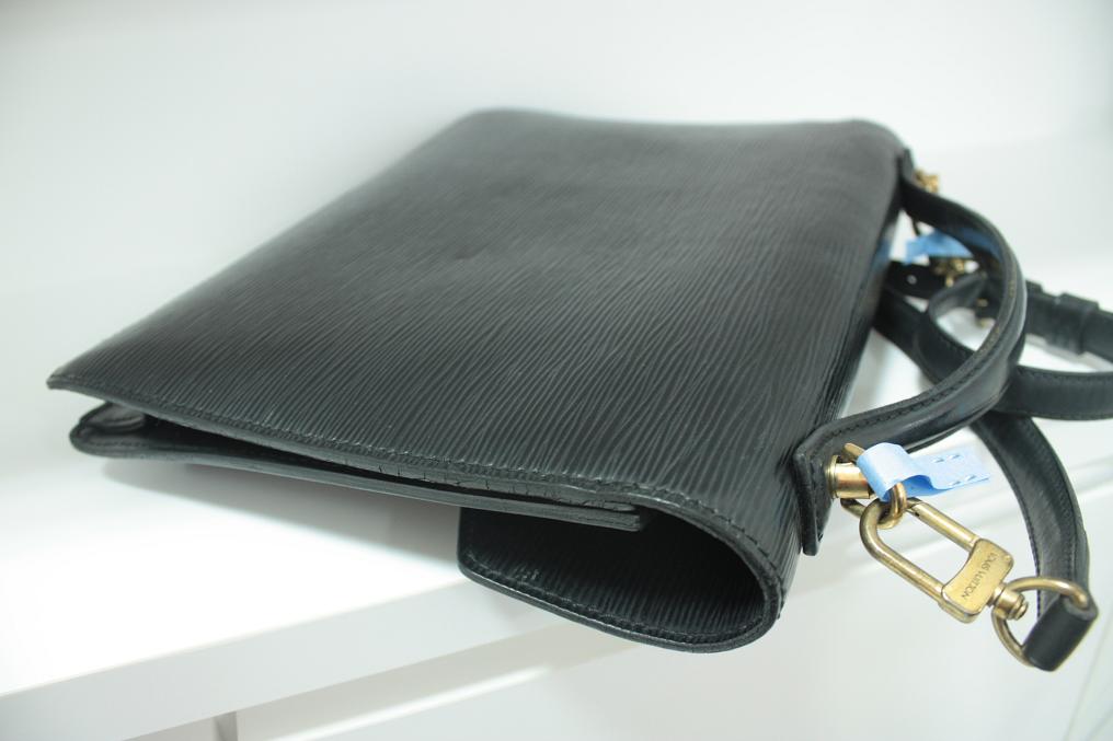 LOUIS VUITTON エピラインのクレンジングです。カビが発生したのでクレンジングで除去しております。今後カビの発生を抑制する防カビ加工をお勧めしております。