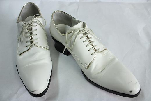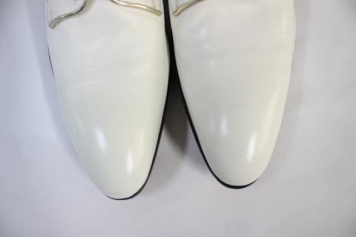白い革靴の汚れは全体をクレンジングし、出来る限り黒ずみや汚れを除去します。クレンジングのみでは落ちなかったものは染色補正を施し目立たなくしていきます。
