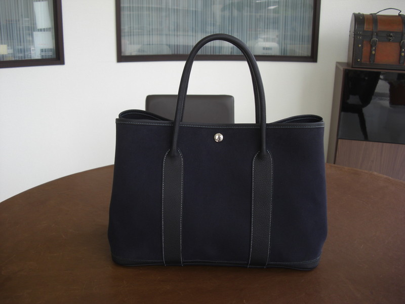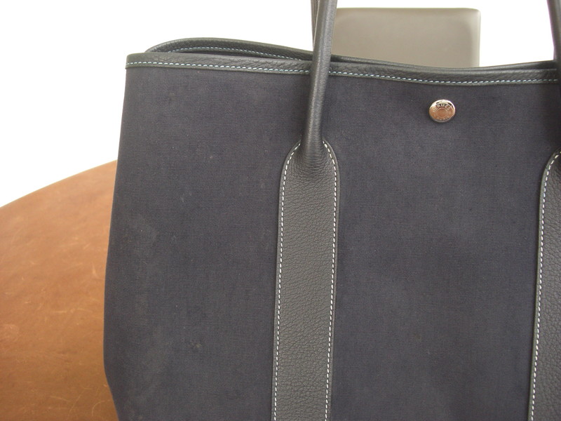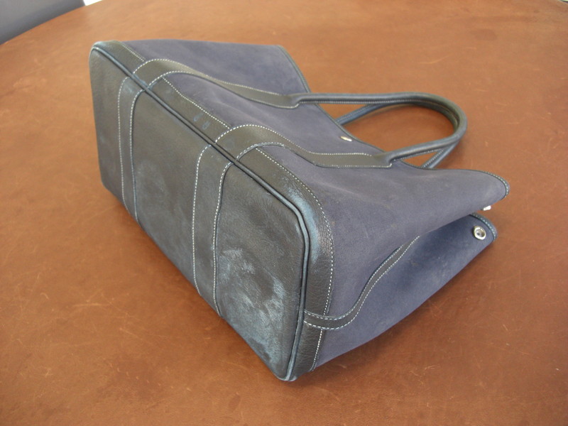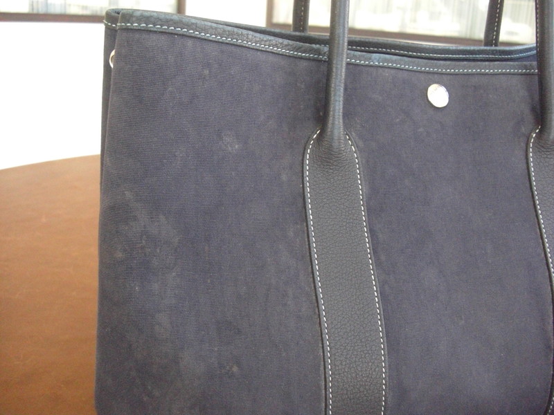 HERMESガーデンパーティ(ネイビー)クリーニングのご紹介です。カビが繁殖したということでご依頼いただきました。ブラックやネイビー、オレンジ、カーキなどはキャンバス部分の変色や色褪せも補正することができます。