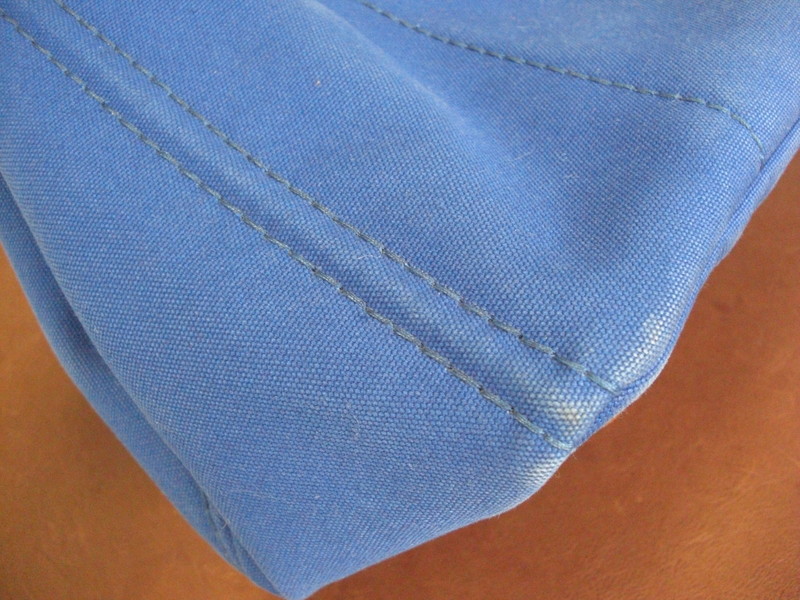 カラーバリエーションの豊富なカナパはホワイトやグレーなどの淡色系は黄ばみやデニムの色移りなど、ブラックや今回のようなブルーなどの濃色系は色落ちなどのご相談を良くいただきます。作業方法は違いますが、いずれも概ね綺麗になります。