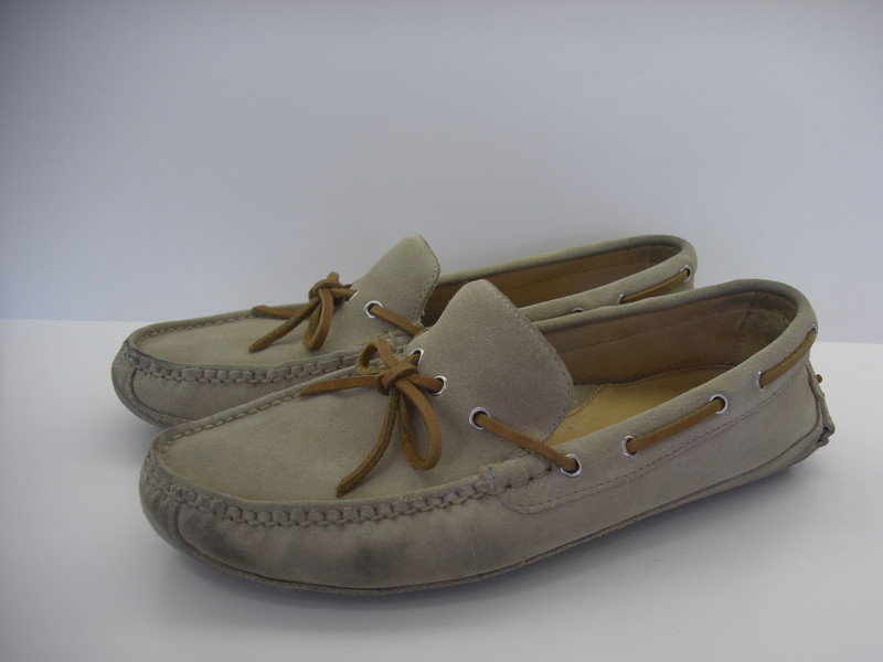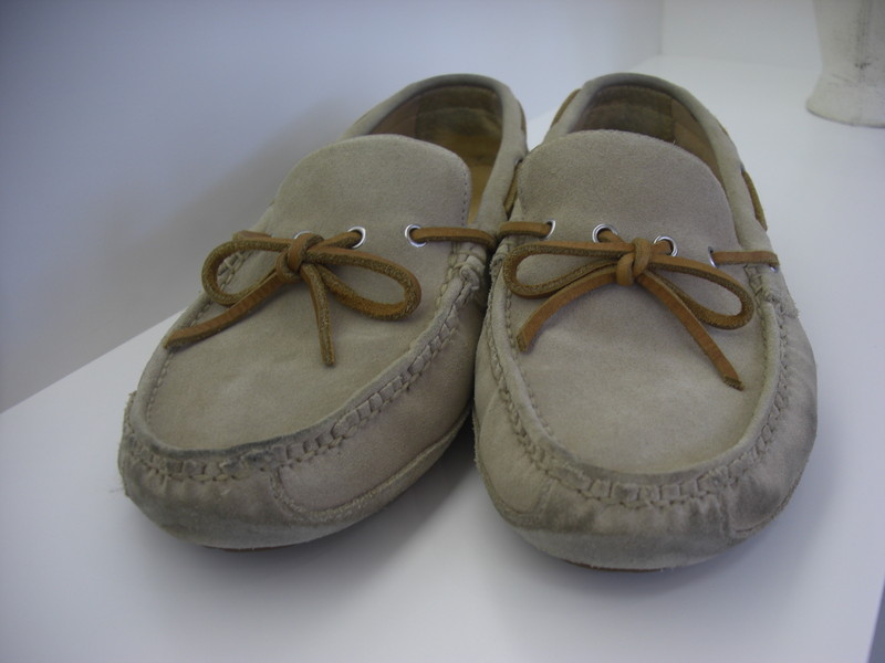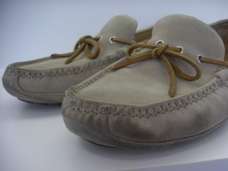 ベージュなどの薄い色のドライビングシューズはソールが薄いので汚れやすいものです。スエードシューズのクレンジングには仕上げに撥水コーティングを施します。今後はこまめにブラッシングして汚れがひどくならないように注意しましょう。