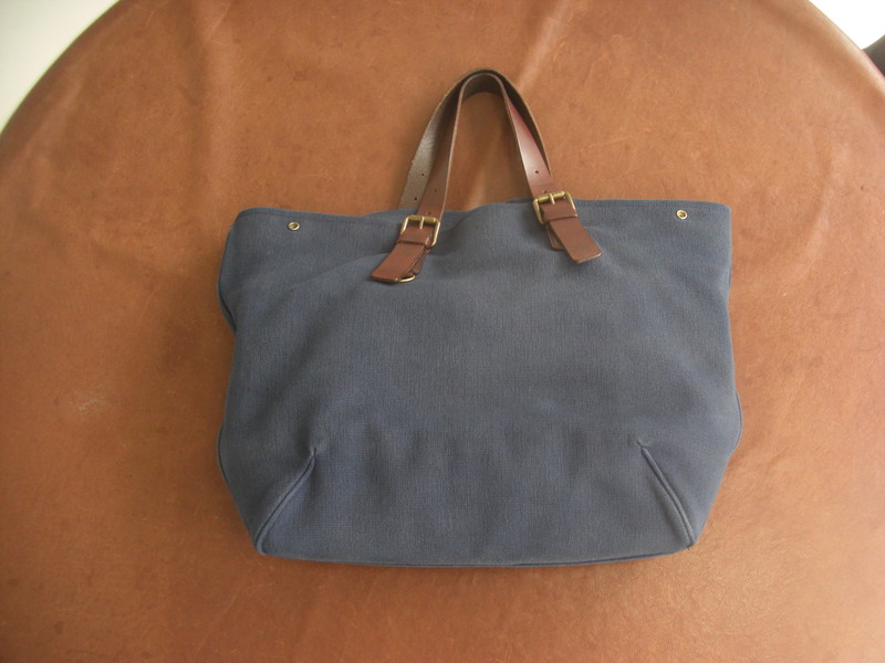 ボッテガヴェネタキャンバスバッグ色褪せ補正のご紹介です。Bottega Venetaのキャンバストートです。長年のご使用でキャンバス部分が色褪せてきたようです。全体染めの方が綺麗に染まりやすいですが、素材や構造によっては部分染めをお勧めすることもございます。今回は部分染めとさせていただきました。