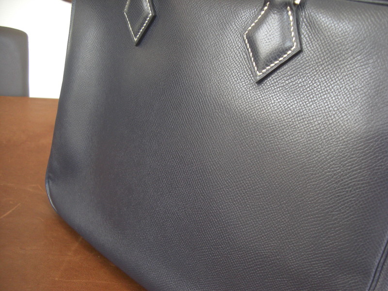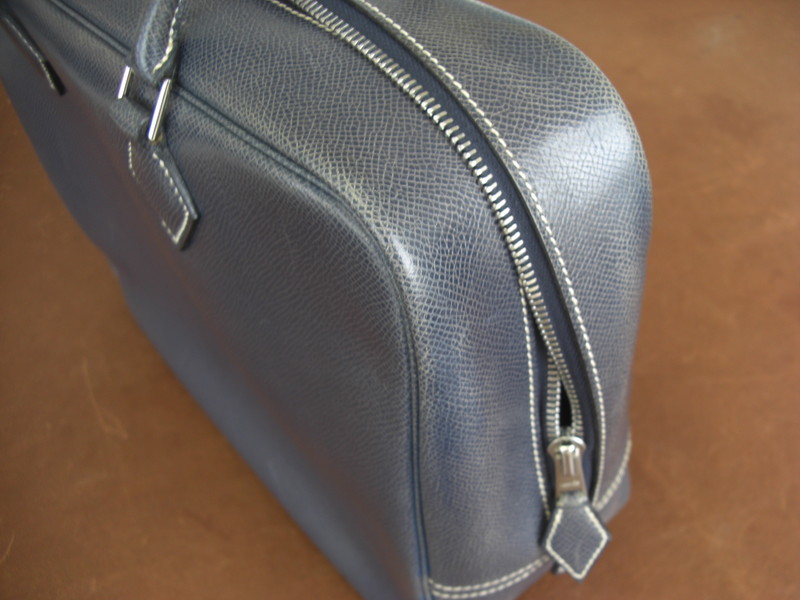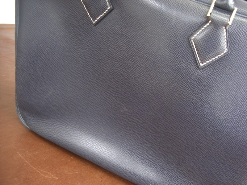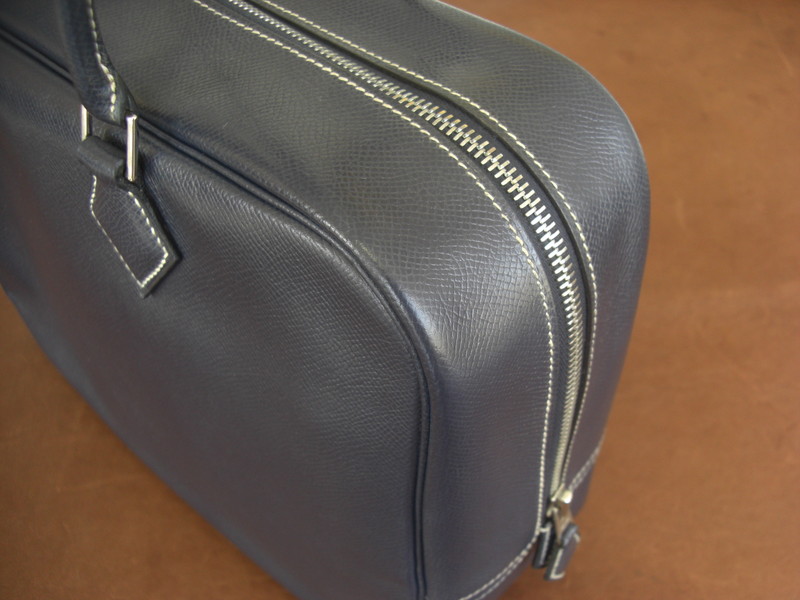 ヴォーエプソンの独特の光沢感をキープしながら、キメ細かいシボ(型押し)が消えないように染色補正いたします。素材の風合いが変わるとエルメスの雰囲気が無くなりますので、職人が一番意識するところです。このようにエルメスは素材の特徴や風合いを損なわないように弊社専属の職人がケアいたします。