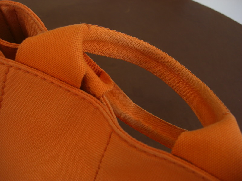カナパのパパイヤオレンジの汚れは他のカラー同様に綺麗になります。色褪せは染色補正も可能です。今後の汚れ予防にハイパー撥水コーティングもお勧めです。