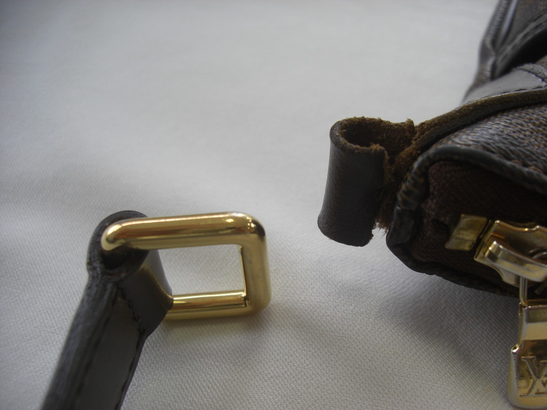 ショルダー根元ののちぎれは革をあてて補強することで補修可能です。ショルダータイプの他、ハンドルタイプの補強も可能ですのでご相談ください。